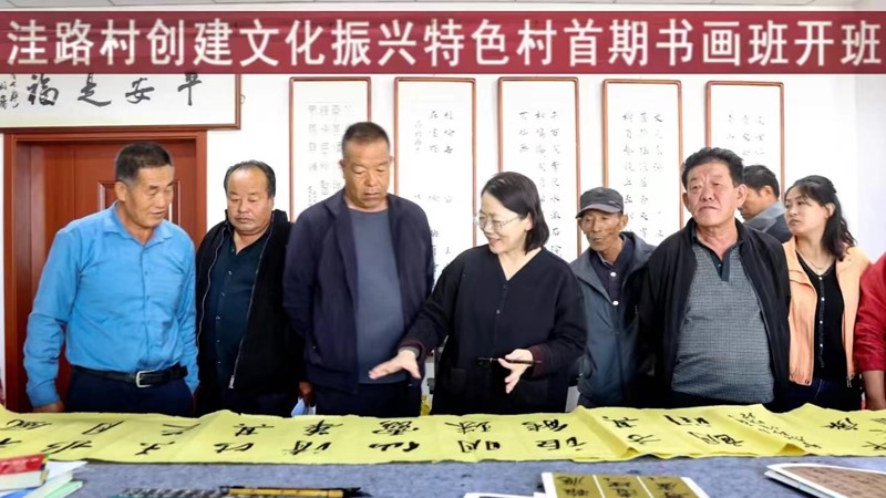 当天银川书画院的书画家们还走进掌政镇洼路村,与当地爱好书法绘画的村民互动交流,并对他们进行了书画指导,让大家在劳动之余也能享受传统书画艺术的熏陶。