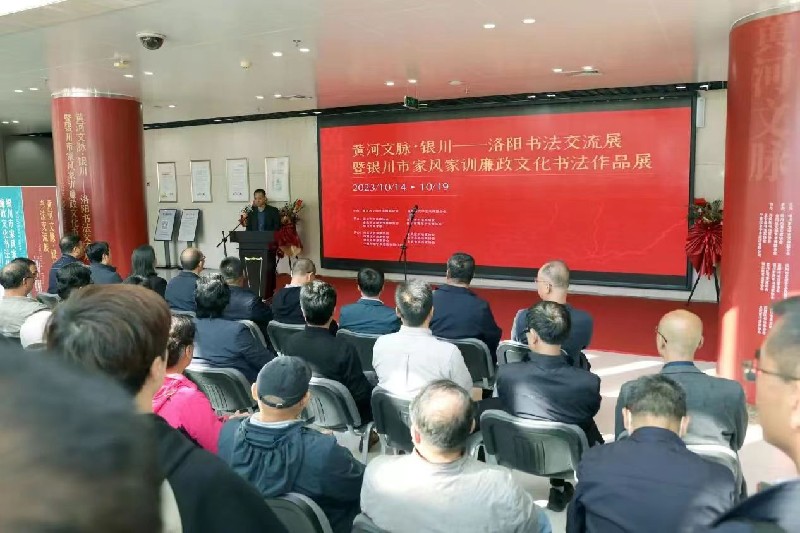 为深入学习贯彻党的二十大精神和习近平总书记视察河南、宁夏重要讲话和重要指示批示精神,积极履行“保护传承弘扬黄河文化,让黄河成为造福人民的幸福河”的历史使命和时代责任,推动两地文艺事业高质量发展,10月14日上午,由宁夏文联、宁夏书协指导,洛阳市文联、银川市文联主办,洛阳市书法家协会、银川市书法家协会、银川市青年书法家协会、金凤区文联承办的黄河文脉·银川——洛阳书法交流展暨银川市家风家训廉政文化书法作品展,在银川市美术馆二楼展出,宁夏回族自治区文联、洛阳市文联、银川市文联、洛阳市书协和银川市书协的领导与嘉宾及来自全市广大书法工作者、爱好者200余人参加了开幕式,开幕式由银川市文联党组成员、副主席李德超主持。