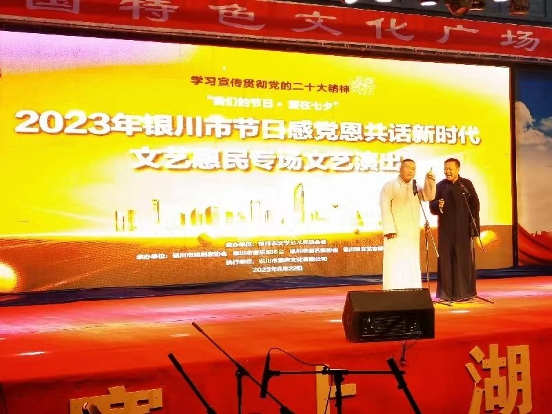 “迢迢牵牛星,皎皎河汉女。”七夕是一个独属于中国人的浪漫佳节。8月22日当晚,由银川市文联主办,银川市戏剧家协会、银川市音乐家协会、银川市曲艺家协会、银川市文艺志愿者协会承办的以弘扬传承中华优秀传统文化为主题的文艺惠民演出在银川市玉皇阁文化广场浪漫上演,王砚晨、秦红霞、张宇琪等文艺工作者们把从中华优秀传统文化中汲取灵感和力量的审美表达与精神气质传递给市民群众。