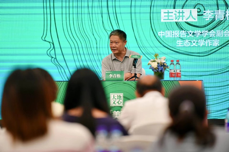 李青松提到,生态文学书写的对象是关系而不是自然本身,更重要的是书写人和自然的关系;生态文学是有立场的文学,作者在创作的时候要遵循尊重自然、顺应自然、保护自然的原则。在此基础上,李青松进一步分析了生态文学的特点。