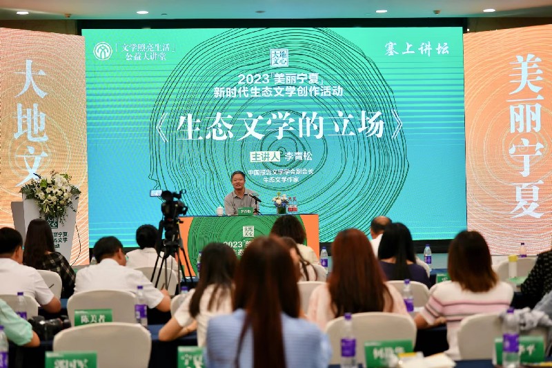 2023年8月15日,恰逢首个全国生态日,一场特别的主题讲座在银川市国际交流中心举行。荣幸邀请到中国报告文学学会副会长李青松就「生态文学的立场」与现场百余位观众进行了分享,此次分享是文学照亮生活公益大讲堂之一,同时也是塞上讲坛第56期。