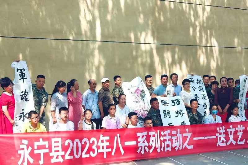 为认真贯彻落实习近平总书记关于“双拥”工作重要论述和视察宁夏重要讲话指示批示精神,继续传承和发扬永宁县拥军优属、拥政爱民的光荣传统,“八一”建军节前夕,永宁县文联组织文艺志愿服务小分队走进驻永武警某部,以文艺演出和书画创作等方式为战士们送上了节日的慰问和祝福。