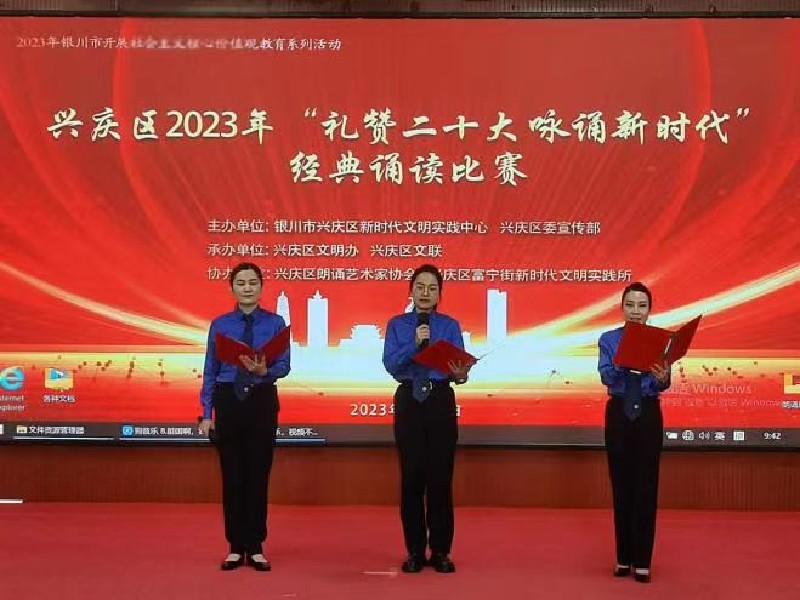 近年来,兴庆区高标准推进、高质量开展红色经典诵读活动,把学习宣传贯彻党的二十大精神落实到位,进一步教育引导兴庆区广大干部群众唱响主旋律、弘扬正能量、振奋精气神,在诵读中华经典中讴歌党的丰功伟绩,全面唱响中国共产党好、社会主义好、伟大祖国好、各族人民好的时代主旋律。