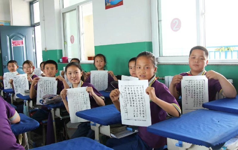 孩子们展示木活字印刷作品