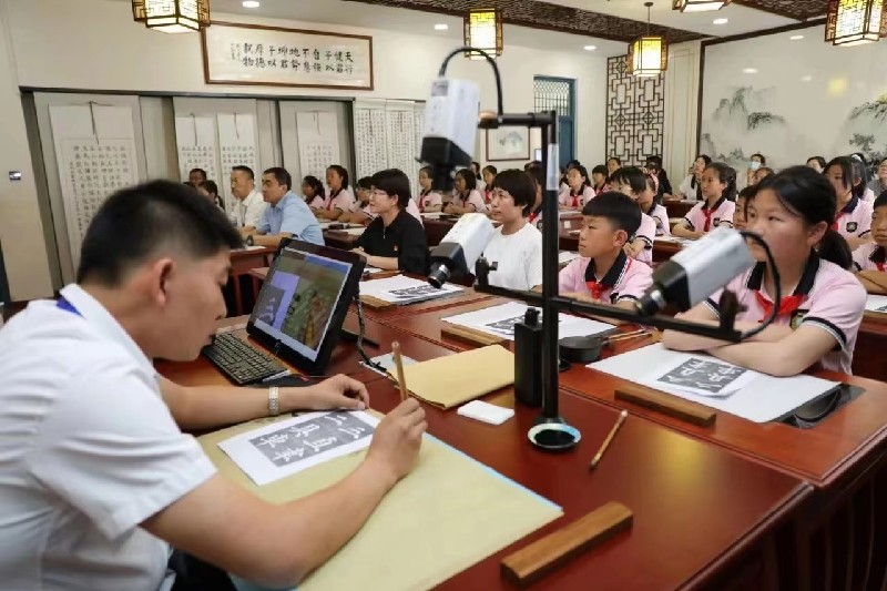 为大力开展中华优秀传统文化教育,近年来,银川市文联以承载着中华传统文化精粹的书法艺术为切入点,常态化组织书法家走进我市中小学,普及中国书法知识,现场讲解、示范,提升中小学生书法审美能力,增强对书法艺术的兴趣,从而喜欢上书法,练习书法,让中国书法艺术在青少年中得到弘扬和传承。