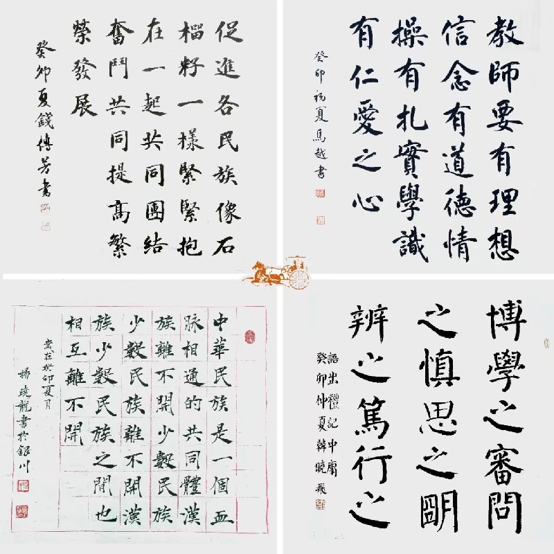 与此同时,主席团其余老师分别对每位老师和同学进行现场辅导,逐一解答老师们提出的问题,通过近一个半小时的深入交流,进一步提高了老师和同学的思想认识和书写水平。最后,金凤区书法家协会向金凤区第十二小学捐赠了美育教育主题书法作品。