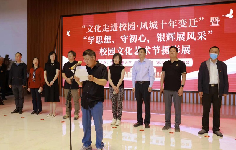 詹安稳为“文化进校园·凤城十年变迁”暨“学思想、守初心,银辉展风采”摄影展开幕式致辞