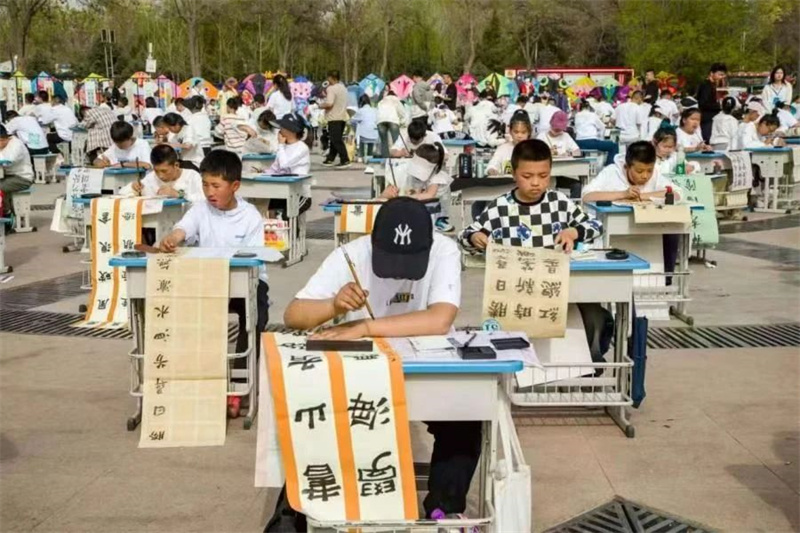 2025年4月20日,宁夏银川市贺兰县首届青少年百人现场书法大赛决赛在贺兰县欣兰广场成功举办。此次活动吸引了广大师生、家长及文艺爱好者1000余人参与。