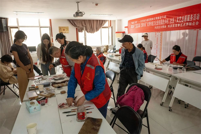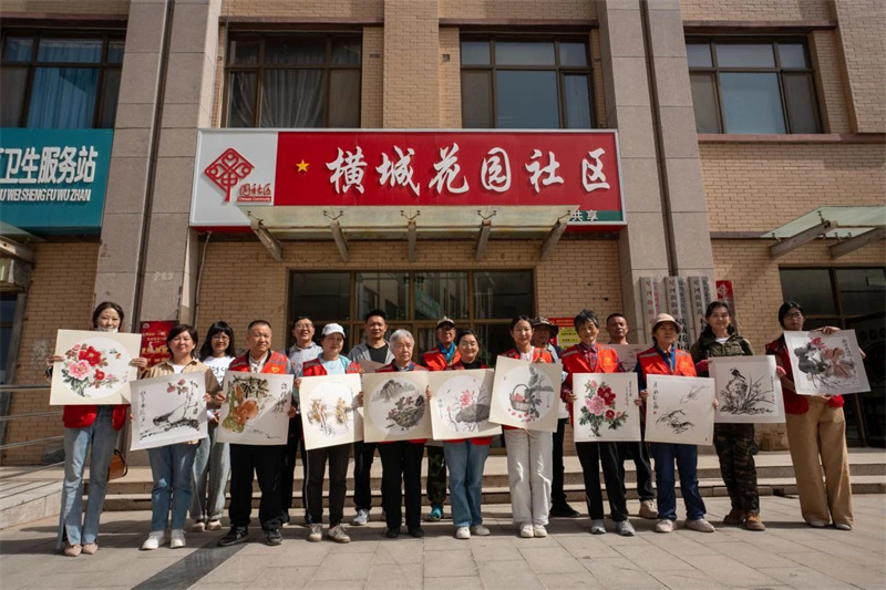 为深入贯彻中国文联2025年“与人民同行”新时代文明实践文艺志愿服务主题活动文件精神要求,在毛泽东同志《在延安文艺座谈会上的讲话》发表83周年、第12个中国文艺志愿者服务日来临之际,2025年5月17日,银川市兴庆区文联组织文艺志愿者10余人走进兴庆区星河街横城花园社区,开展“文联万家 艺润兴庆”优秀传统文化进社区文艺志愿服务活动,以艺术赋能社区文化建设,为居民送去文化暖风。