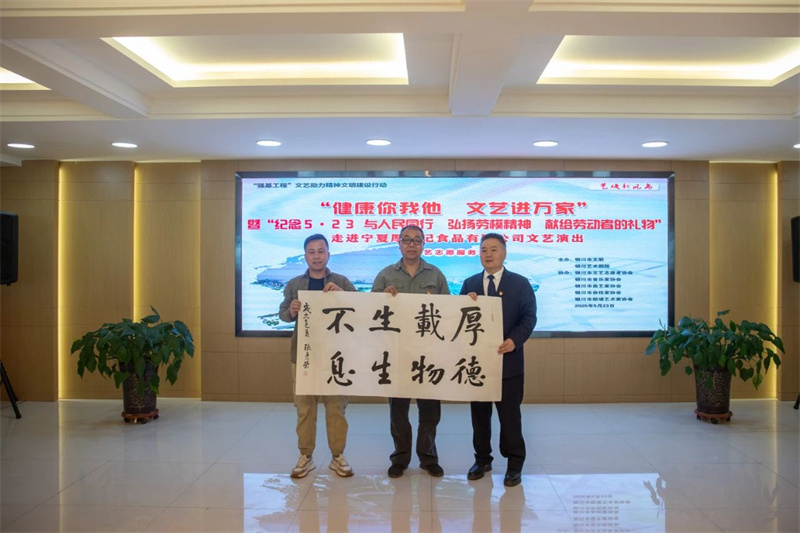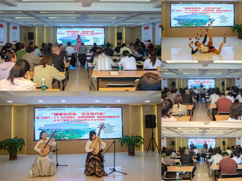 为深入贯彻中国文联2025年“与人民同行”新时代文明实践文艺志愿服务主题活动文件精神要求,2025年5月23日,正值毛泽东同志《在延安文艺座谈会上的讲话》发表83周年、第12个中国文艺志愿者服务日之际,银川市文联联合银川艺术剧院,组织艺术家们走进位于宁夏银川市贺兰县的大型民营企业——宁夏厚生记食品有限公司,为企业员工们送上一台题为“艺焕新风尚——纪念5·23 与人民同行 弘扬劳模精神 献给劳动者的礼物”文艺演出。