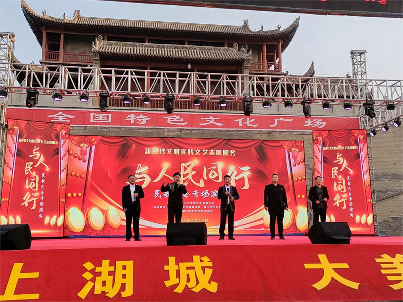 为深入贯彻中国文联2025年“与人民同行”新时代文明实践文艺志愿服务主题活动文件精神要求,2025年5月24日晚,由银川市文联、贺兰县文联联合主办的“强基工程”——文艺助力基层精神文明建设行动暨“与人民同行 为时代放歌 我们的节日·端午”凤飞大舞台民歌大会专场演出在宁夏银川市兴庆区玉皇阁广场举行。活动以民歌为纽带,传唱花儿,讴歌黄河,奏响民族交响,让观众在优美的旋律中领略中华优秀传统文化的魅力,度过一个美好的端午之夜。