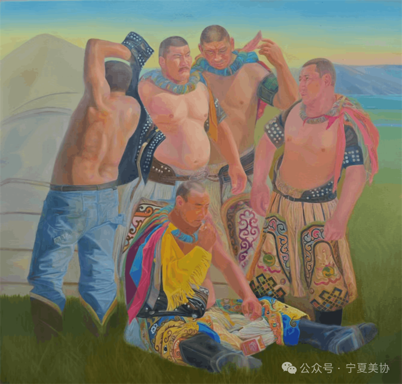 杨婧媛《搏克手》油画 110×115cm