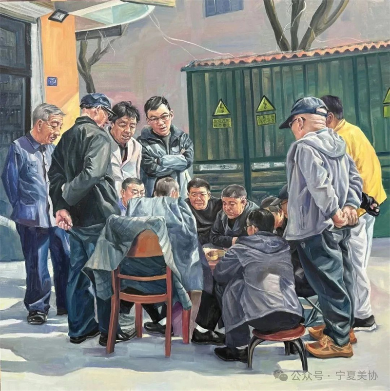 杨瑞娜《暖阳里的楚河汉界》油画 120×120cm