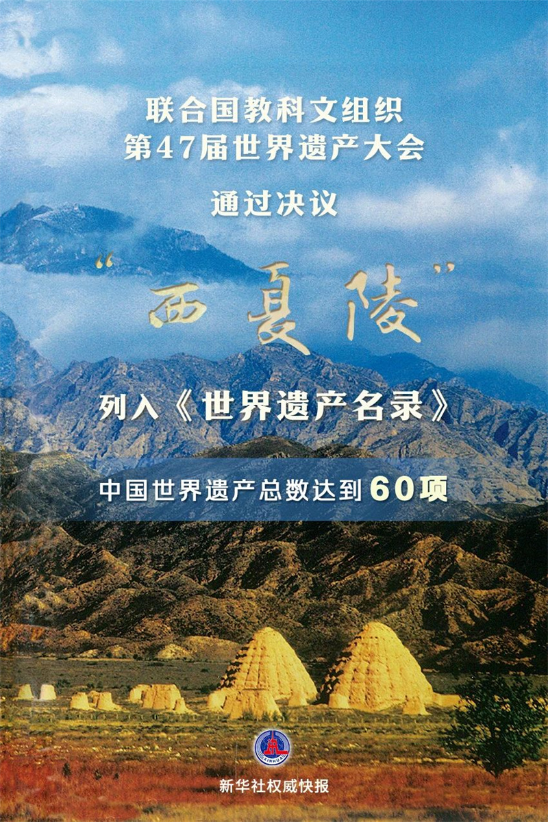 当地时间2025年7月11日16时23分,在法国巴黎召开的联合国教科文组织第47届世界遗产大会通过决议,将“西夏陵”列入《世界遗产名录》。至此,中国世界遗产总数达到60项。