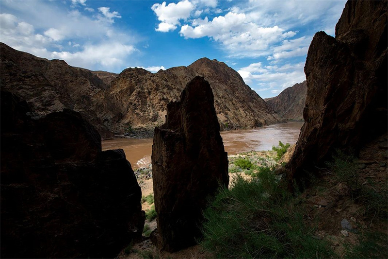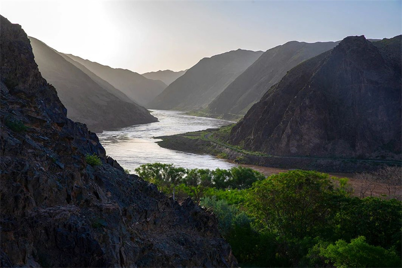 黑山峡是黄河上游最后的大峡谷,起于甘肃靖远大庙村,终于宁夏中卫沙坡头小湾村,全长71千米。黑山峡山崖耸峙、河水幽深,因峡谷两岸的岩石多呈青黑色而得名。这里是黄河与长城“双龙”共舞的形胜之地,也是我们血脉所依、根魂所在的美丽家园。峡谷深处的岩画、长城遗址随风远逝,黄河岸边的水车、梨园果树生机盎然。七姊妹、老两口、三兄弟……峡谷沿岸的礁石被赋予了拟人化的品格特征,这些景观成为一代代沿河而居的人们与黑山峡相依相生的见证。