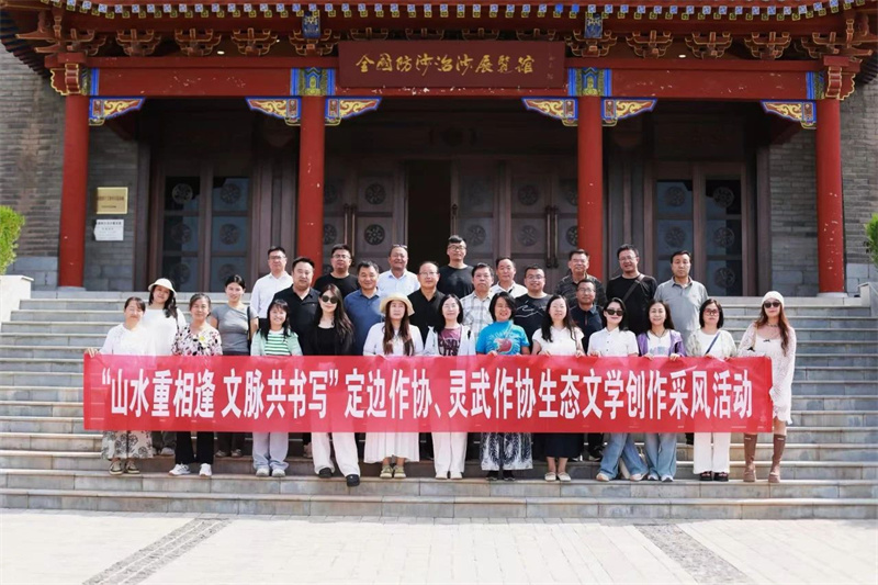为深入践行习近平文化思想,积极响应中国作协“深入生活、扎根人民”的号召,2025年8月2日,定边县作家协会组织会员奔赴宁夏灵武市,开展了一场别开生面的文学交流活动。此次活动以“山水重相逢 文脉共书写”为主题,定边作协与灵武作协共计30余人热情参与,共同开启了一段文化交流的精彩旅程。