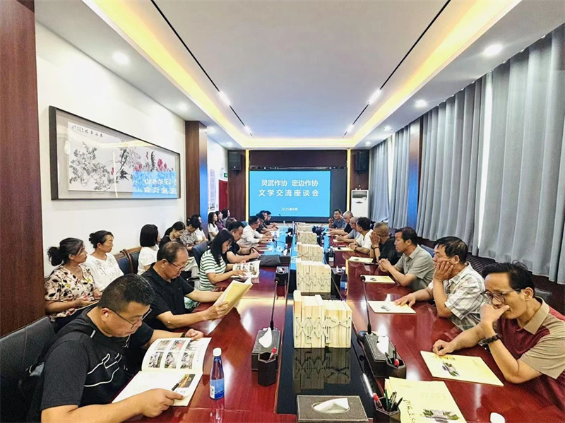 本次活动由定边作协主席左志旌与灵武作协常务副主席杨贵峰共同策划,双方作协紧密协作,在行程安排、后勤保障以及摄影宣传等方面全力投入,确保活动的每一个环节都有条不紊地推进。8月2日上午,在灵武作协成员的陪同下,定边作协一行先后参观了白芨滩国家级自然保护区治沙博物馆、沙漠公园以及研学中心。大家深入了解了当地治沙工作取得的辉煌成果,亲身感受了生态保护实践的伟大意义。随后,众人前往白芨滩自然保护区长流水管理站,实地体验生态治理工作背后的艰辛与不易,深刻领会到奋斗在一线的工作者们为守护生态环境所付出的努力。当日下午,会员们参观了银湖沙漠生态小镇。之后,返回灵武城区,与灵武作协召开文学交流座谈会。在座谈会上,两地作家们畅所欲言,分享各自的创作经验与心得体会,现场氛围热烈而融洽,为作家们搭建了实地观察社会变迁、深切感受人民奋斗的宝贵平台,有力地促进了两地作协之间的交流与合作。