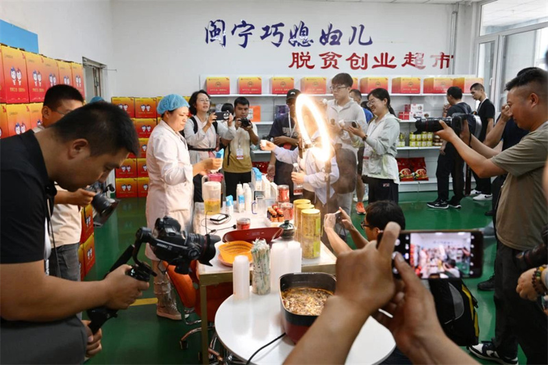 参加全国少数民族摄影人才培训班的学员在闽宁禾美扶贫车间采风(袁宏彦摄)