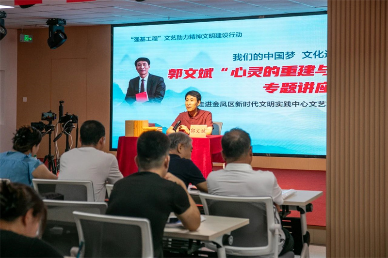 为了帮助社区矫正对象树立正确的人生观、价值观、世界观,强化法治观念,重拾生活信心,更好融入社会,2025年8月15日,由银川市文联、金凤区新时代文明实践中心、金凤区司法局、金凤区文联主办,宁夏回族自治区政协无党派界别委员工作室协办的“艺焕新风尚”暨“我们的中国梦 文化进万家”郭文斌“心灵的重建与生活的重启”专题讲座文艺志愿服务活动在金凤区新时代文明实践中心成功举办。来自宁夏银川市金凤区的200余名社区矫正人员现场聆听了讲座。