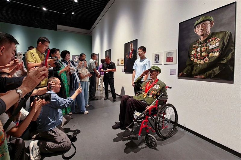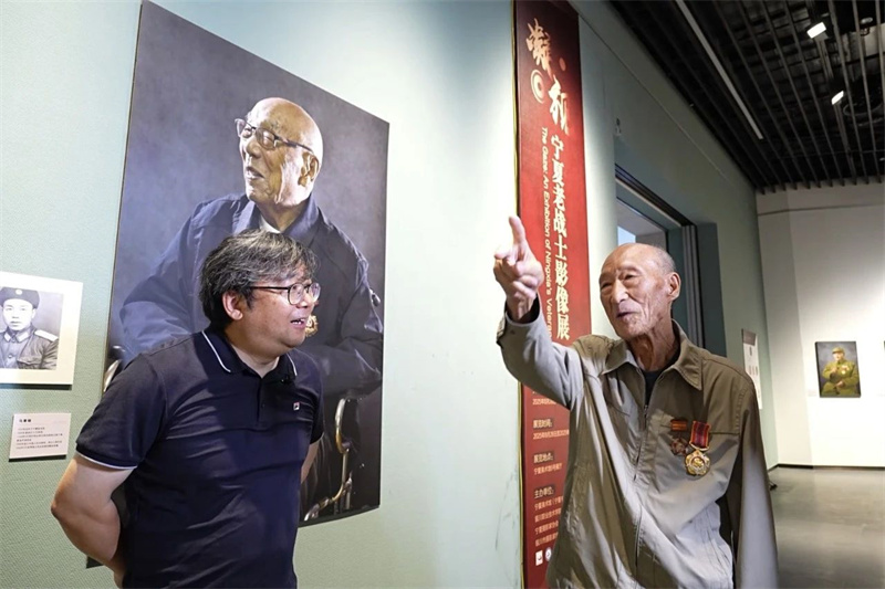老战士代表魏天禄、黄廷海、朱萱华、李文祥在展览现场与观众分享互动,来自银川职业技术学院的师生与老战士代表合影留念。“在凝视一幅幅老战士肖像照的过程中,让我们重温了那段气壮山河的民族史诗,作为新时代青年,我们要传承红色基因、赓续精神血脉,在建设美丽新宁夏中挺膺担当。”银川职业技术学院学生杨莉菲说。
