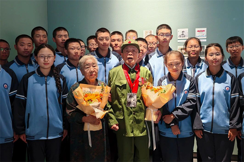 老战士李文祥夫妇与银川职业技术学院学生合影