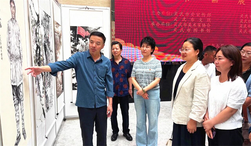 2025年9月2日,由灵武市委宣传部、灵武市委统战部、灵武市文联等部门共同主办的“铭记历史 开创未来”——纪念中国人民抗日战争暨世界反法西斯战争胜利80周年主题书画展在灵武市图书馆开展。本次展览共展出精心创作的书画作品80余幅,以艺术形式缅怀革命先烈,弘扬伟大抗战精神。展览开幕当天吸引了众多市民前来参观。
