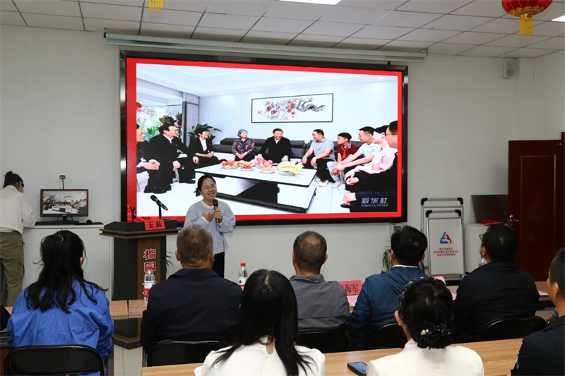 银川市铸牢中华民族共同体意识理论宣讲骨干许莉莉同志,声情并茂地为全体党员讲述了习近平总书记亲临考察过的银川市金凤区长城花园社区,多民族社区居民,相亲相爱,团结互助,亲如一家的生动故事,深深地感染了在座每一位党员,让中华民族共同体意识在大家的心里根扎得更深了。