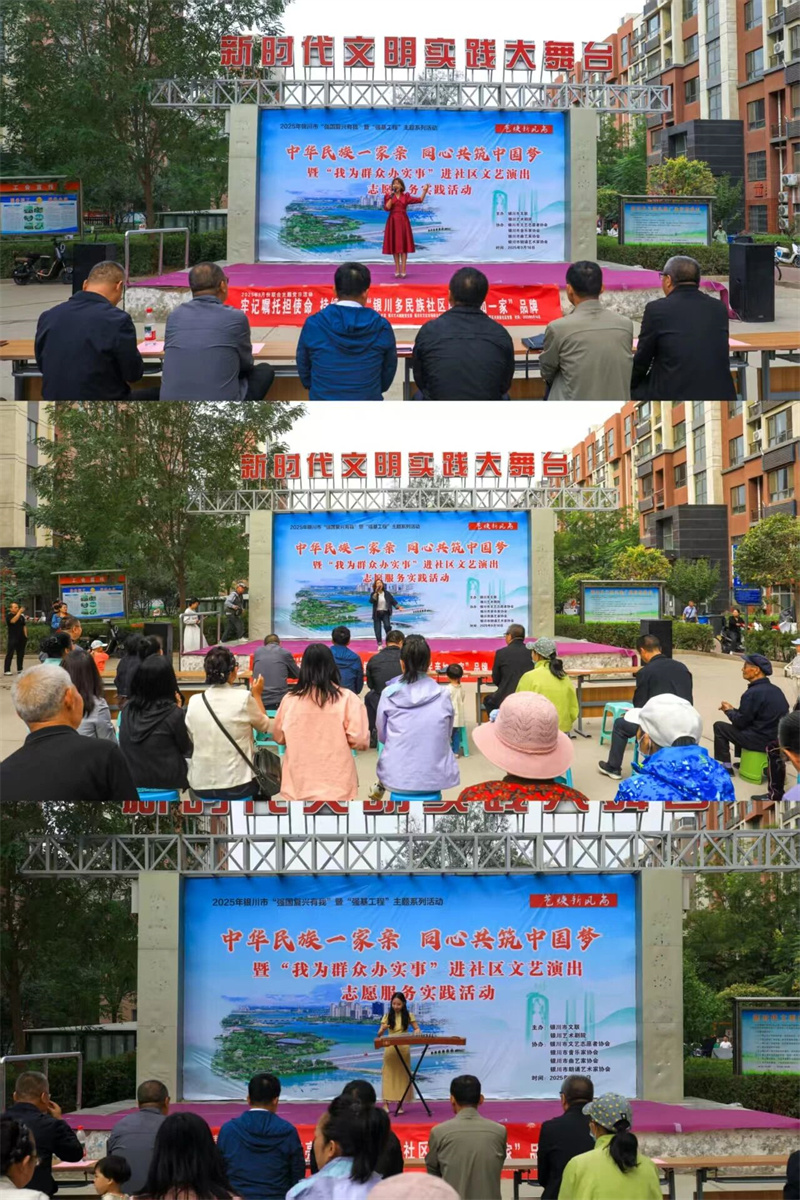 为扎实开展民族团结进步月活动,有形有感有效推进铸牢中华民族共同体意识宣传教育,按照银川市直机关工委9月份“支部主题党日”活动的要求,2025年9月16日上午,银川市文联党支部、银川市民委(宗教局)党支部、银川艺术剧院党支部、银川市文化市场综合执法支队党支部、西夏区委统战部党支部等多家党组织走进宁夏银川市西夏区兴洲苑社区,共同开展了“牢记嘱托担使命 持续擦亮‘银川多民族社区居民亲如一家’品牌”主题党日活动。