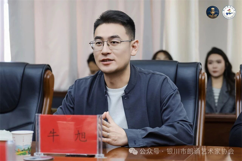 银川市朗诵艺术家协会主席牛旭在致辞中,对银川博文小学在语言艺术教育方面的远见卓识表示赞赏。他相信,朗协的专业力量与学校的教育实践相结合,必将为青年教师和学生们搭建一个展示才华、提升语言表达与人文素养的高质量平台,共同探索出一条具有银川特色的青少年诵读教育创新之路。后期银川市朗诵艺术家协会也将依托校园阵地开展青年教师诗会与青少儿诵读活动。在实践中挖掘一批优秀青年教师更好地推动有声语言艺术繁荣发展,共同讲好中国故事。