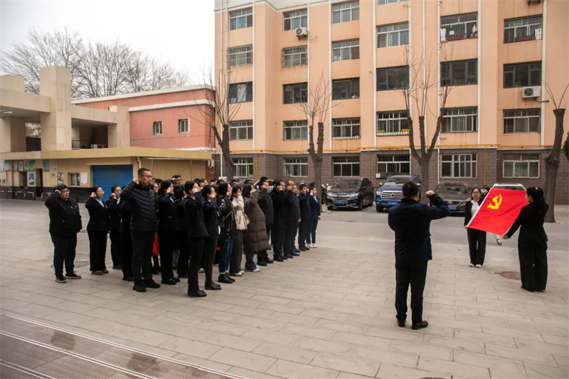 在银川市司法局党委委员、副局长李英的领誓下,全体党员共同重温入党誓词。