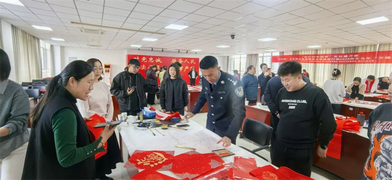 本次活动共书写春联及“福”字300余副,以笔墨传情送福,向坚守一线的民警道一声辛苦,送上新春美好祝福。
