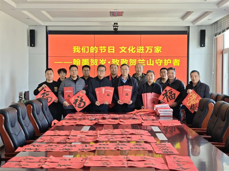 次日,携着墨香与敬意,送福队伍来到贺兰山国家级自然保护区管理局及森林草原派出所,为新时代的守护者量身创作,现场气氛热烈。“守山护绿千秋业,挥墨迎春万户安”“贺兰巍巍彰浩气,警徽熠熠映初心……”一副副春联既洋溢着节日的喜庆,更蕴含着对坚守奉献精神的崇高礼赞。书法家们还结合生态保护主题,创作了“青山不墨千秋画,绿水无弦万古琴”等作品,以艺术形式礼赞生态守护者的担当。此次活动共赠送春联150余副、“福”字200余张。