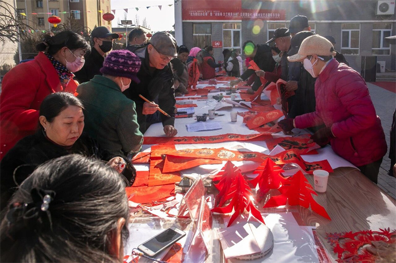 此次活动除了精彩的戏曲演出外,银川市书法家协会的书法家黄镇、韩步方、任明、何占忠、窦建辉,银川市民间文艺家协会的民间文艺家赵建萍、张颖珍、张娜、冯刚、董玉梅,还现场为群众写春联、剪剪纸、捏面人、制作糖画等,将年前的节日喜庆气氛推向了高潮。