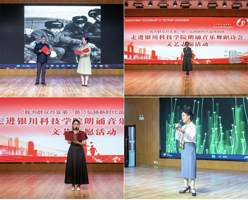 本次演出是银川市“强国复兴有我”暨“强基工程”系列文艺志愿活动的重要组成部分,精选12首原创文艺作品,将经典雷锋精神与宁夏本土新时代雷锋式先进典型相结合,让文艺之花绽放在校园一线。演出在《雷锋日记》选读中拉开帷幕,深情的诵读带领现场观众触摸初心、感悟信仰;《白芨滩,英雄颂歌》《菌草之魂,闽宁情深》等作品,以文字与声音致敬宁夏治沙英雄、闽宁协作榜样,让新时代雷锋精神在塞上大地的生动实践跃然眼前;《沁园春·咏雷锋精神》《永远的雷锋》等诗词朗诵,字字铿锵、句句深情,诠释着雷锋精神跨越时空的永恒魅力。
